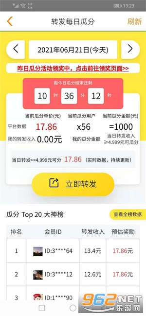 3、田鼠网极速版虽然转发单价比较低,但是官方承诺100%涨分,相比起来也并不比那些高单价平台差,另外还有每日瓜分1000元活动