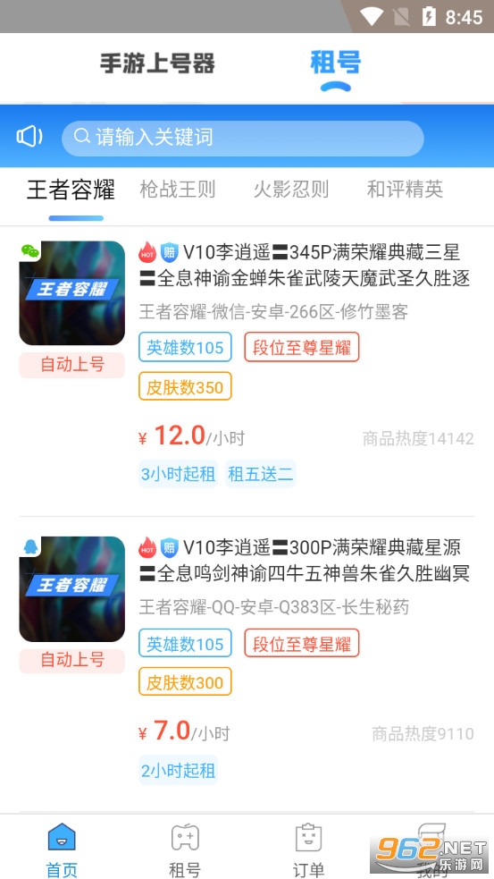 2.提供当下热门游戏(王者、lol、和平精英等)、火爆新游的账号出租