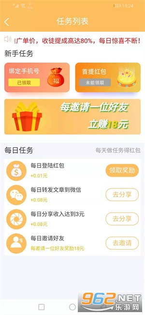 2、邀请收徒可获得最高18元/人的现金奖励,同时还有两级80%转发收益分成