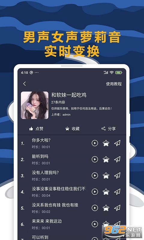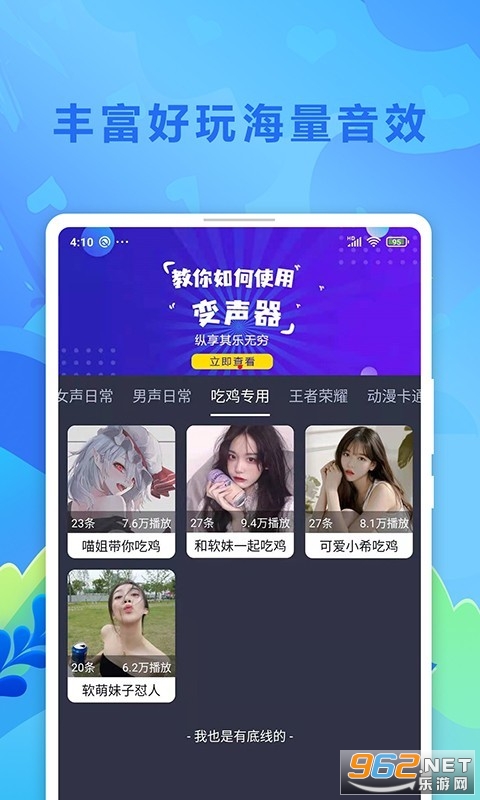 2、无论你喜欢大叔音、萝莉音,还是甜美音,全都能快速实现,尽情开始你的声音表演;
