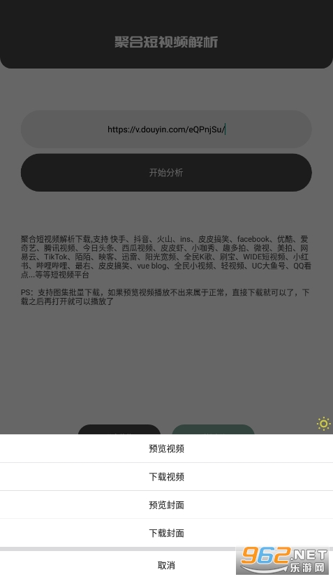支持几十个短视频平台去水印解析的软件,软件完全免费无广告,支持下载无水印视频和封面。聚合解析安卓版免费提取无水印素材,各种格式图片、视频、文案轻松提取。