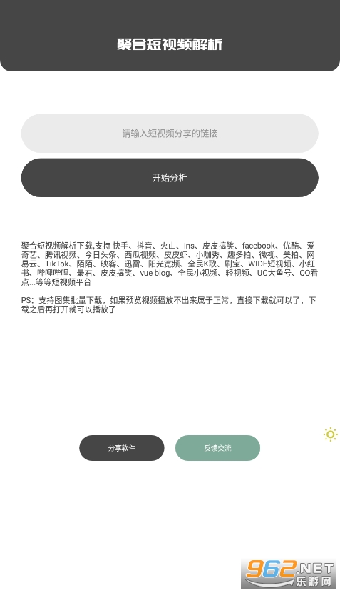《聚合解析(短视频解析)》是一款非常好用的短视屏链接提取平台,用户可以通过短视屏的传送链接来直接获取相对应的无水印资源哦,非常的方便快捷,目前支持各大知名视频平台下的短视频,随时可以提取哦