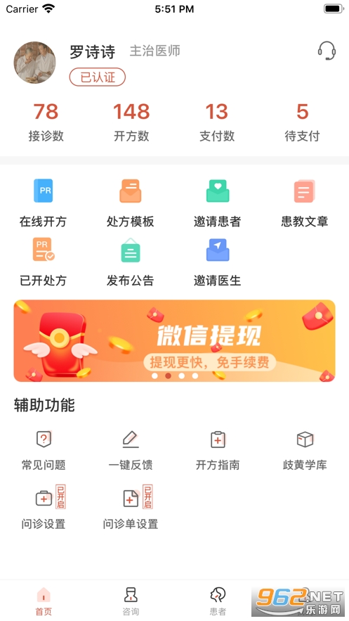 【歧黄医官】是一款移动互联网在线问诊医疗应用,以互联网+医疗的形式针对性解决患者的看病难、看病贵的问题。线上专注于医疗问诊服务,线下专注于药品质量。为医生提供在线诊疗、患者管理、在线开具治疗建议等服务,致力于为医生打造全方位全场景的医生服务平台。