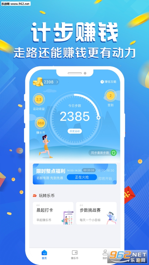 根据步数解锁等级成就,运动赚金两不误;