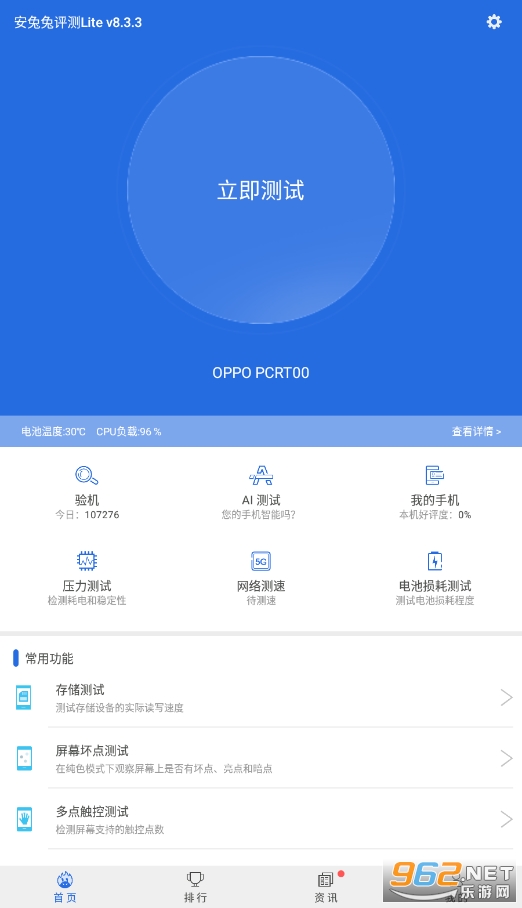 [功能丰富] 跑分、验机、机型评价、屏幕检测、测速、电池损耗等功能;