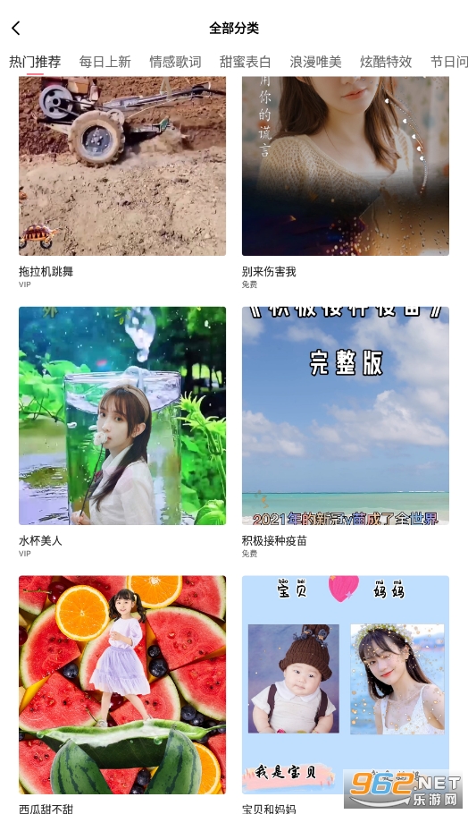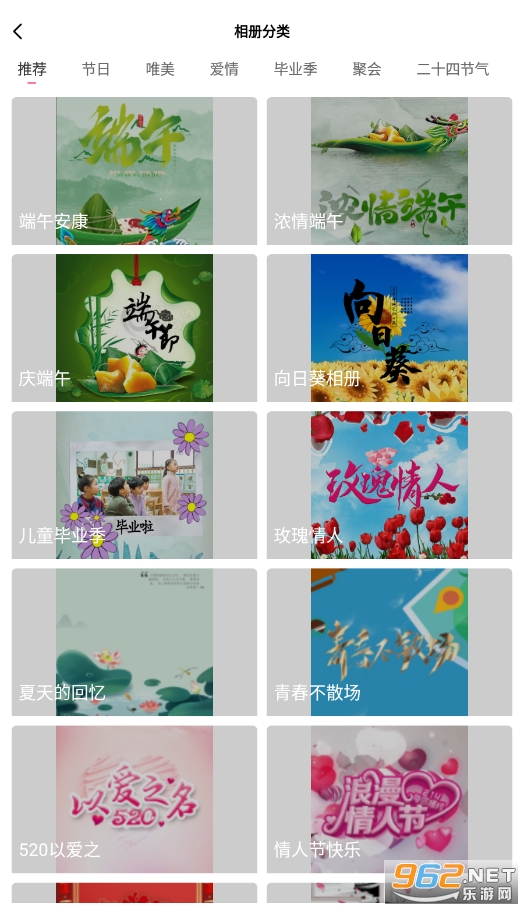 【相册模板】 个性相册MV模板,每日更新!操作简单,一键即可套用海量模板,用此款剪辑软件体验特效的电子相册制作风格,还能预览是否达到你的完美要求!拥有卡点、ai换脸换装、生日、表白、问候、唯美等分类风格~