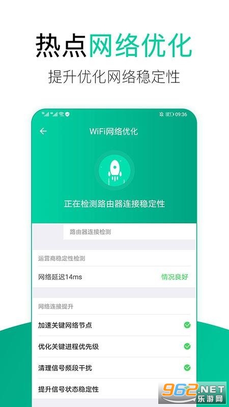 2、WiFi加速:四大项连接提升,网络和路由器连接稳定性检测,让WiFi更快更稳;