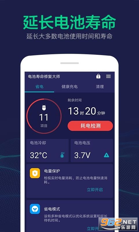 《电池寿命修复大师官方版》是一款非常好用的手机内存优化软件,这款软件的操作和安装都非常简单,可以为你的电池提供最好最棒的优化功能,直接打开就能执行快速省电小程序代码,而且使用方法及其的简单,完全没有什么后作用,感兴趣欢迎来962下载吧!