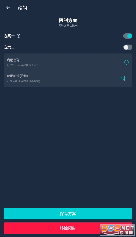 2、可以给app设置固定使用时长,并且可以设置输入密码才能使用(使用一段时间,退出,在进入需要密码)。