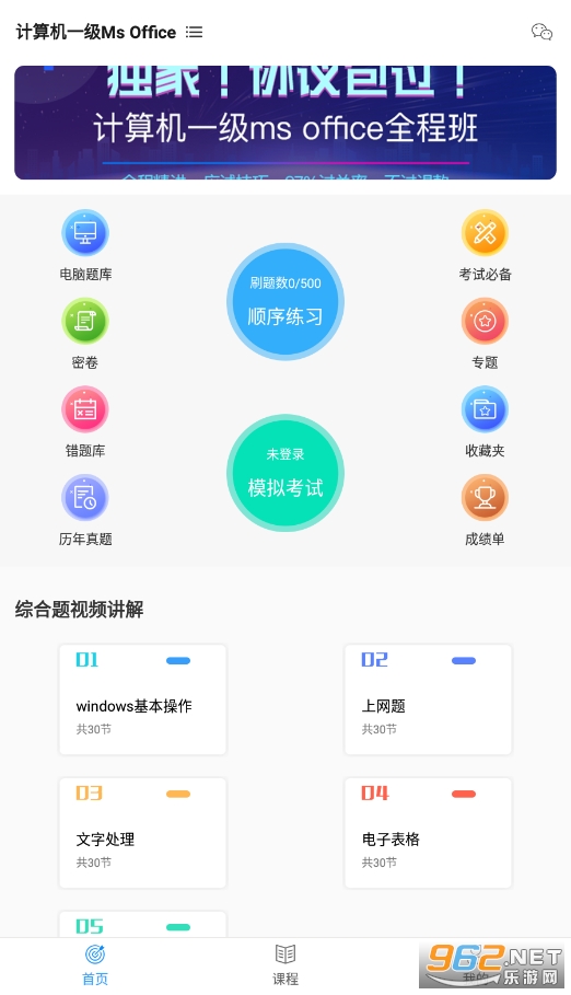 模拟考试,模仿真实的计算机一级考试,帮助用户更好地了解考试题型;