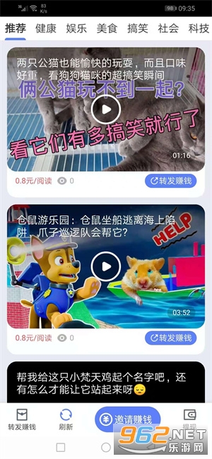 2、登陆成功后,点击“转发”频道任选一篇文章转发到,转发被点击阅读的次数越多,赚的也就越多