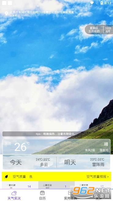2、是一个非常不错的线上天气预报APP,每天的温度以及湿度都可以自由查看;