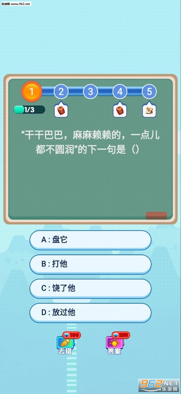 3、在有限的次数下完成闯关,每个题目都有一定的时间限制,从四个选项中来选择正确的题目。