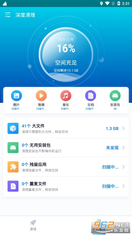 【清理加速】一键加速解决卡慢,深度清理释放空间。