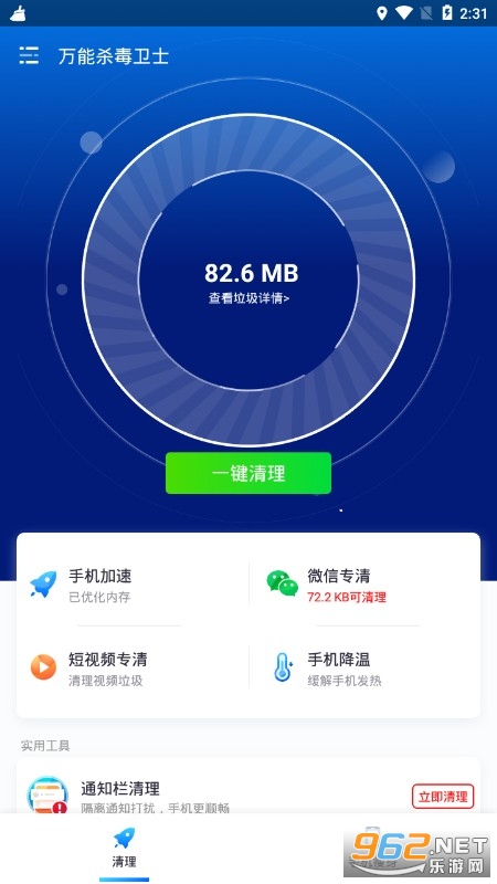 是一款专业的系统清理应用,具有内存清理、垃圾清理、杀毒等核心安全管理相关功能,让您的手机安全无忧!一键清理更高效、快速、准确地清理手机垃圾,提升手机运行速度。