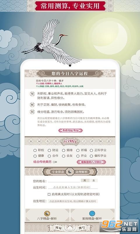 3.根据易经的卦理,为用户提供专业的号码测算功能,并且可以依据用户生辰得出个人结论,是不可多得的周易学习工具。