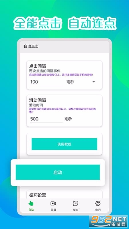 《录屏连点器安卓版》是一款非常好用的手机辅助工具,这里为用户提供最好最棒的手机软件,通过录制的方式来进行点击,解放你的双手,对于一些游戏更加轻松方便,免费使用,感兴趣的朋友还在等什么?欢迎来962下载体验试试吧!