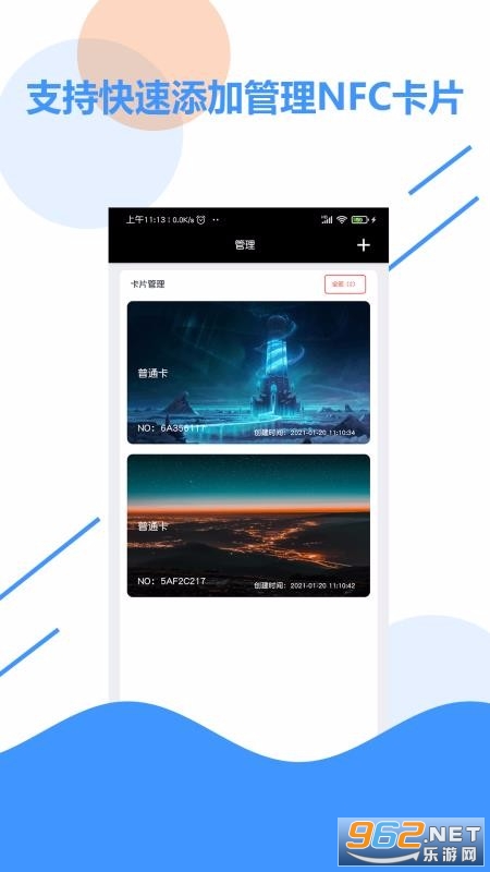 NFC 百宝箱是一个专业又便捷的NFC读写app,支持读取添加的NFC编码数据、保存数据,还能自定义各种不同的NFC标签;当用户使用该软件的时候可以加快添加NFC卡片的速度,统一高效地管理自己所有的NFC卡片,通过该平台上面的添加与绑定功能可以为自己的生活带来更多便捷性,在使用NFC卡片的时候更加方便;该软件能适用于生活中各种需要感应控制的场景,比如需要NFC门禁感应开关的时候,需要乘坐公交等情况都能利用它来自由读写管理,有了它就相当于有了一个电子卡包,从此再也不用担心NFC感应卡片丢失的问题了。