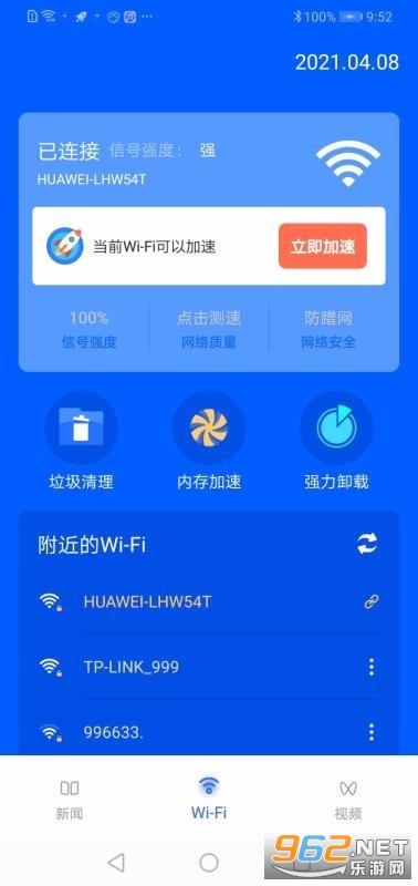 WiFi智能助手是一款无线网管理软件,为用户提供了垃圾清理、网络加速以及WiFi检测等多种服务功能,给用户提供更优质的网络使用体验;这是一个功能丰富的系统管理类软件,其主要功能是为用户提供系列的WiFi管理服务,另外还增加了许多常用的手机管理工具,比如垃圾清理和内存加速等,有了这些功能后就能对自己连接的网络轻松监控管理,还能对手机系统进行自由的优化处理,通过手机硬件以及网络方面的优化能整体提高使用体验感;针对无线网络服务版块给用户提供了高效的WiFi搜索以及防蹭网等功能,给用户连接以及管理网络提供便捷。