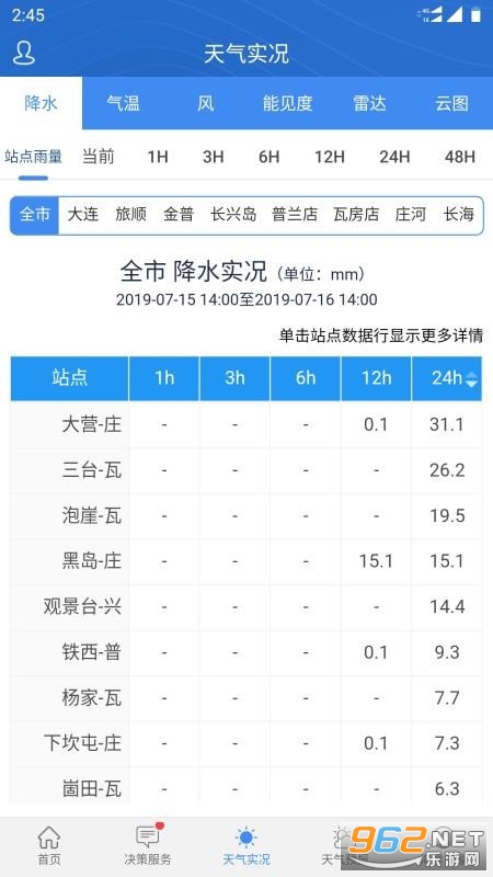 提供天气实况数据,降水、气温、风向、能见度、雷达等板块的天气实况数据都能便捷查看;