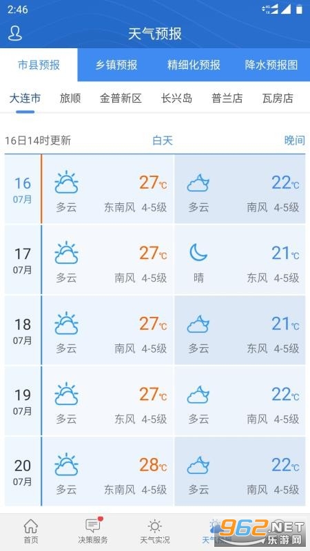 《大连气象app》是一款非常好用的手机查天气软件,这里为用户提供最好最棒的查天气系统,为大连市提供最棒的天气资源,能够最好最远40天内的天气情况,而且不需要任何费用,感兴趣的朋友还在等什么?欢迎来962下载试试吧!