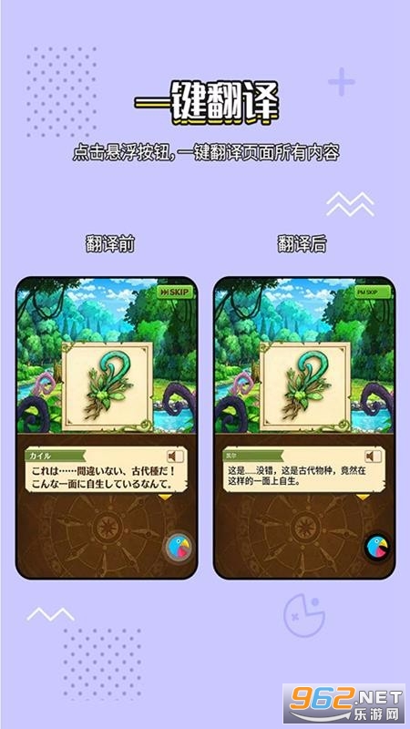 《岛风翻译app》是一款非常给力好用的手机日历软件,它能够汉语翻译游戏里面的文本,适用多种多样手机游戏,能够自动检索并无缝拼接转换汉语翻译,操作也简单,上手容易,不需要任何费用,感兴趣欢迎来962下载体验试试吧!