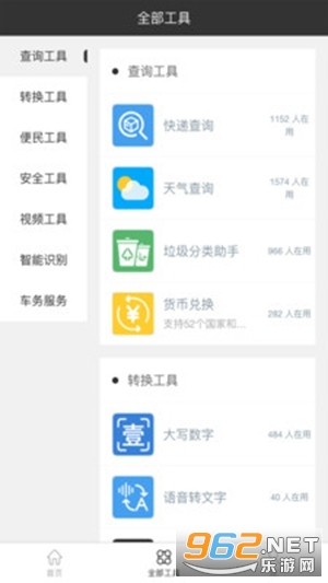 软件以工具箱的合成为主要的功能,数十种不同的工具能够为用户提供最大程度上的便利哦,还有各种查询、转换、安全、视屏等各种工具可以使用,让你的手机秒变方便的工具箱吧