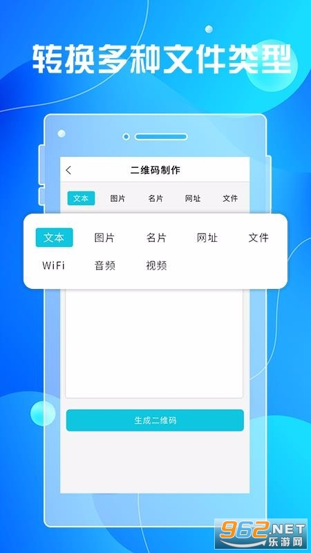二维码生成及扫描是一款二维码生成美化及扫描软件,可将文字,图片,网址,音频,视频等转换成二维码,方便您保存文件或分享给好友。在这里您可以自定义二维码样式,大小,颜色,背景等,让您的二维码不再只有黑白和方块,应用还提供多种几何图形或者表情图片生成二维码。