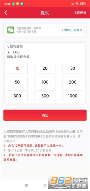 3、银河涨满10元起提现到钱包,首次秒到账,后续24小时内审核到账,每人每天限提一次