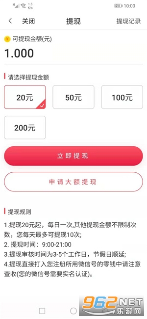 3、肉桂网满20元起提现到,24小时内审核到账,根据提现额度不同每天可多次提现