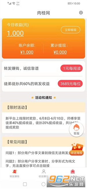 1、新用户下载注册肉桂网app就送1元,转发文章单价默认1元/阅读,可自定义为0.2-8元