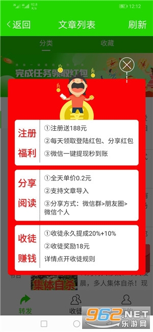 2、邀请好友参与转发文章,可获得基础18元现金奖励,后续还享徒弟30%、徒孙20%提成