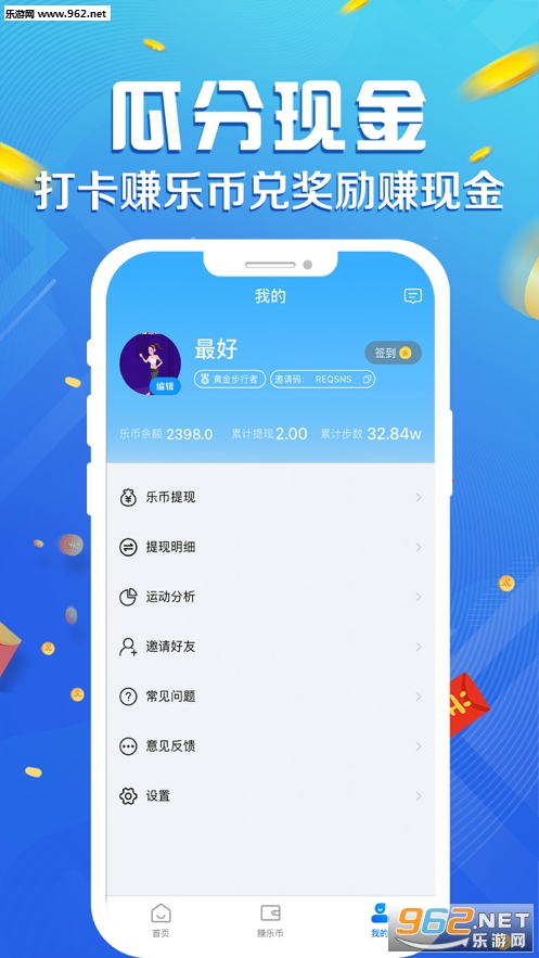 步数免 费换乐币,乐币提现当钱花,买买买享受优惠和奖励,跟红包一样有趣。