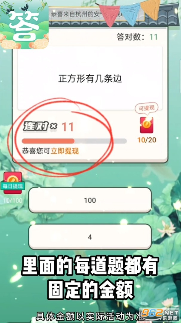 3、超多的知识等您来回答,回答正确就可以就获得丰厚的红包收益;题目类型有很多,考验您的知识积累的时候到了,答对越多获得越多奖励。