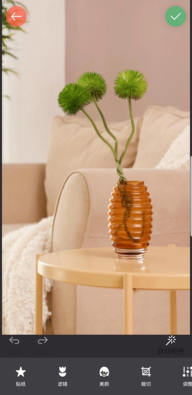 3、点击顶部滤镜图标可以预览各种风格,轻选就能实时生效,搭配贴纸库里的动态特效能让照片更有趣。