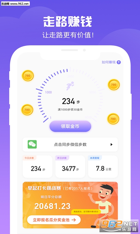 这款走路赚钱软件非常适合锻炼一族,越运动越有钱,让走路变得有价值,软件内置多种走路赚钱玩法,完善的分享机制让你能赚取更多,为用户进行走路的计算,邀请好友进行组队跑步,在健身的同时完成任务领奖,一举两得!