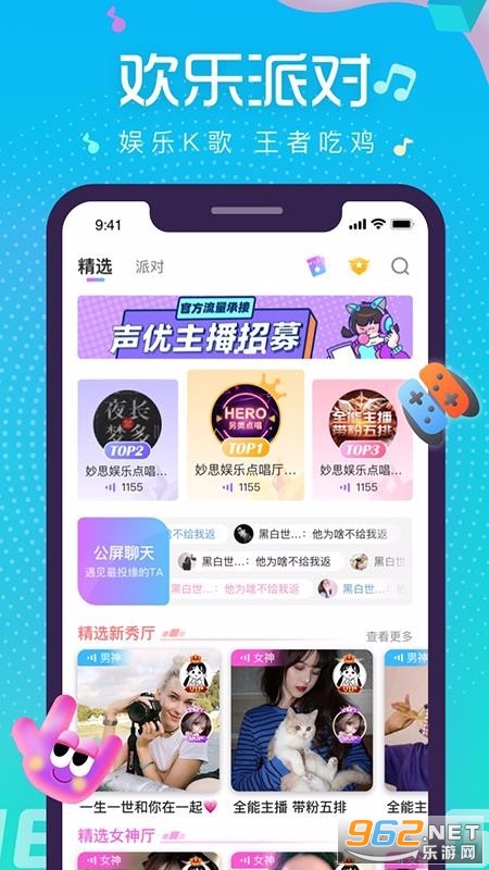 2、【娱乐派对】点唱K歌、线上相亲、连麦哄睡、温馨电台......不同的声音汇聚一起,玩出无穷乐趣!