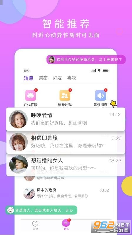 3、真诚线上交友,杜绝不真实的用户,严格进行筛选,放心交友,真实性很强。
