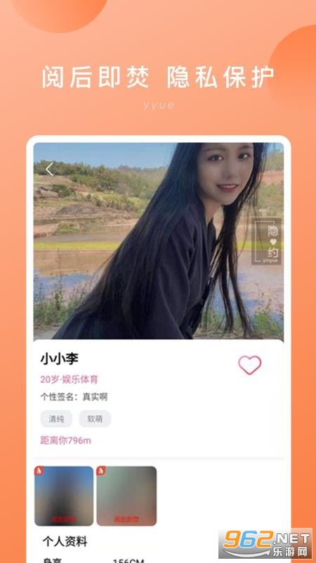 《隐约APP》是一款全新上线的美女恋爱交友平台,这里唯一用户提供最好最棒的聊天软件,超多美女帅哥任你选择,而且不需要任何费用,而且还可以帮助大家轻松的脱单哦,感兴趣的朋友还在等什么?欢迎来962下载体验试试吧!