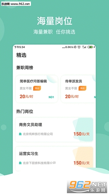 家巢兼职是一款求职招聘的服务平台,这里入驻了诸多优质靠谱的企业,拥有丰富海量的岗位需求,根据用户的需求和浏览习惯智能推荐感兴趣的职位,支持线上沟通交流,非常便捷,需要的朋友欢迎下载使用吧。