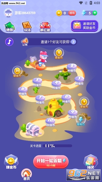 一款手机答题赚钱平台,在这里用户通过回答平台的成语问题来赚钱,也可以完成赚钱任务来积累金币福利,提现非常简单,感兴趣快来962试试吧!
