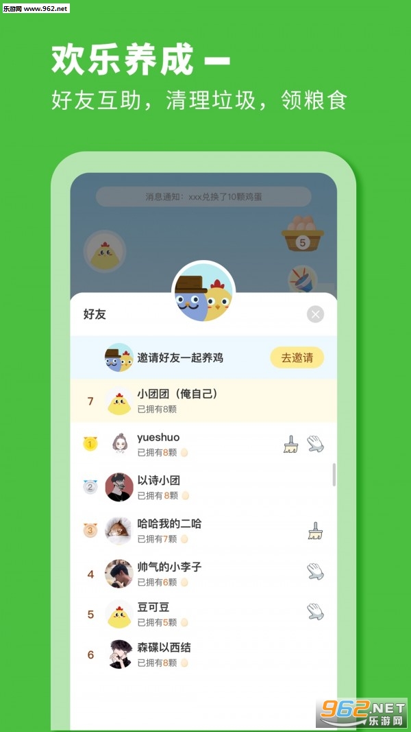 小鸡来啦是一款社交养成app。可以在碎片时间里体验在线养鸡收取鸡蛋的乐趣,同时鸡蛋还能兑换奖励。