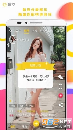 《喵空app》是一款非常给力的美女聊天交友软件,这里为用户提供最好的聊天交友插件,安装也方便,通过平台上面的快速匹配功能,让你能以一个直接交流的方式区认识对方,能直接在线上进行沟通,可以在这里让你们有一个便捷的约会平台,感兴趣欢迎来962下载吧!