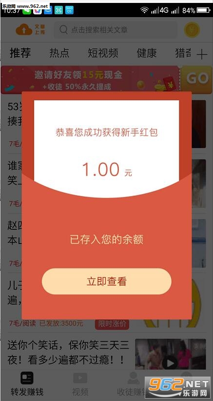 一款转发文章赚钱的APP,火速转也是火速赚,是有银子家的新平台,做过他们家平台的都知道,还是比较靠谱的,5元即可提现秒到账,现在是活动时期,转发被点击单价0.7元,非常的不错哦。
