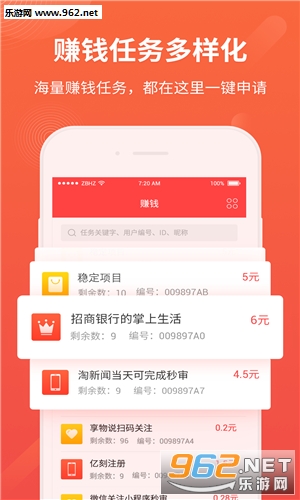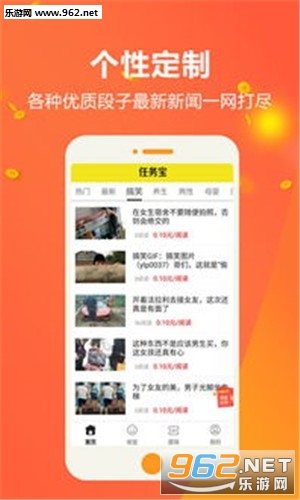 轻松的掌上阅读赚钱软件,平台每天都会为你更新最新的新闻资讯和赚钱任务,操作简单,动动手指就能体验,提现也快,秒到账,喜欢就来962下载试试吧!