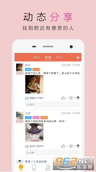 动态查看,除了自己可以分享动态之外还能查看其他好友发布的动态并点赞;