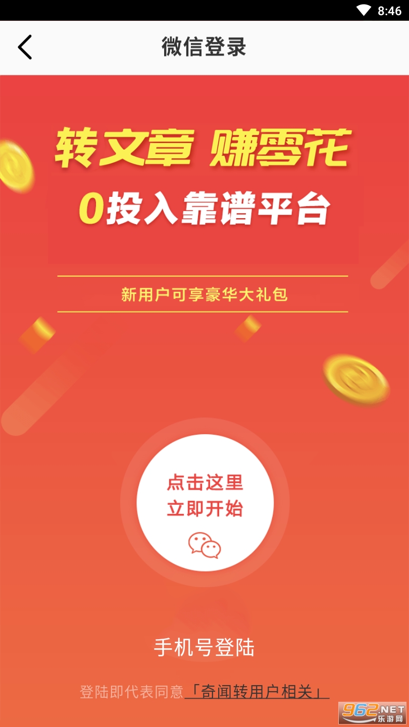 1、通过点击顶部的“立即下载”进入奇闻转app下载页面,根据提示下载安装后一键登录并绑定手机号即可