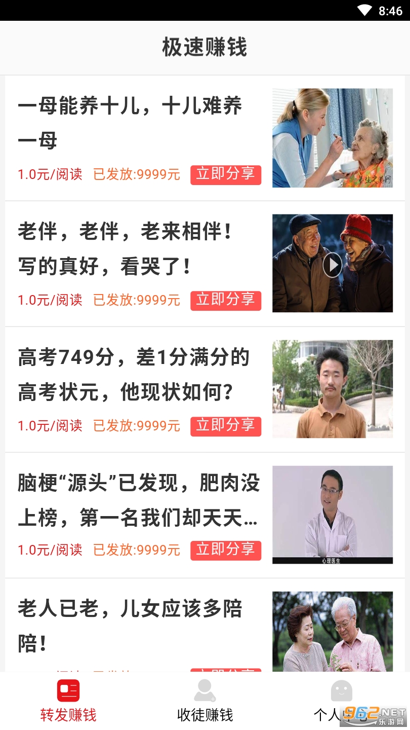 3、奇闻转转发平台是有银子精心打磨后推出的又一款优质转发类手机赚钱软件,彻底解决文章屏蔽问题,务必重玩