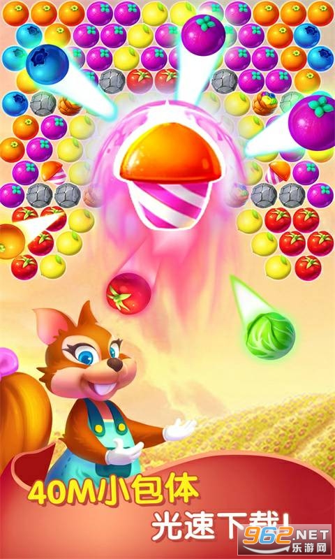 泡泡农场大作战是一款休闲的泡泡龙游戏,森林里的小鸟和水果泡泡被魔法的泡泡给困住了,需要勇敢的松鼠来拯救。于是,小松鼠开启了拯救小鸟的战斗中,为了更快地完成任务,小松鼠还必须收集各种水滴来浇灌他们的田园和农场,这样才有充足的水果泡泡来完成艰难的任务。 你有信心帮助小松鼠完成这些难关么?让我们一起克服困难,踏上这神秘而又充满困难的冒险路程吧!