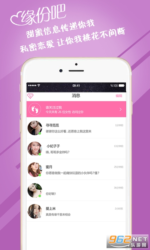 《缘分吧同城交友》是一款非常给力的美女聊天交友平台,这里为用户提供最好最棒的撩妹工具,全新的互动平台,聚集众多的高颜值好友,支持大家积极参与其中哦,而且不需要任何费用,操作也方便,感兴趣的朋友还在等什么?来962下载试试吧!
